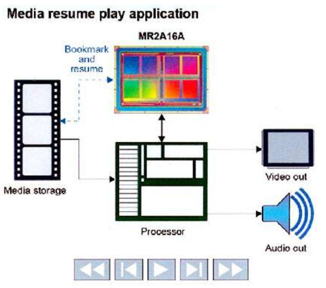 MRAM還適用于具有簡歷播放功能的娛樂應用程序。掉電期間,指示播放媒體時間戳的書簽會快速存儲在非易失性MRAM中。然后幾乎立即進行后續(xù)播放并繼續(xù)播放(下圖1)。