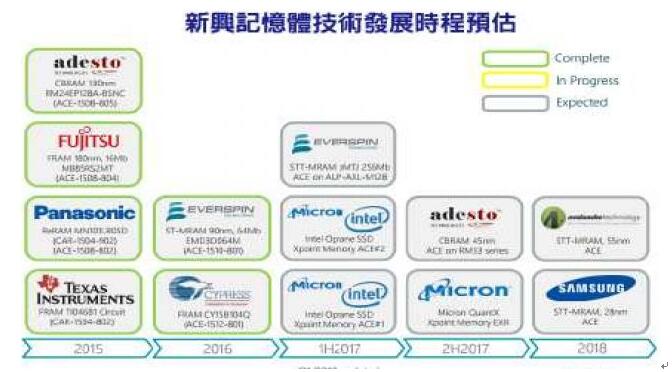 根據研究機構Tech Insights估計,包含F(xiàn)RAM、STT-MRAM、3D Xpoint 、CBRAM等新世代內存,都已陸續(xù)進入小量生產階段。 不過,這些新興內存技術中,除了少數存儲芯片例外,要發(fā)展到能跟NAND Flash、DRAM不相上下的程度,恐怕還需要很長的一段時間,因為DRAM與NAND Flash已具備極為龐大的經濟規(guī)模,即便新興內存技術在性能方面明顯優(yōu)于現(xiàn)有內存,在供貨穩(wěn)定度、成本方面也未必能與現(xiàn)有內存技術相抗衡。