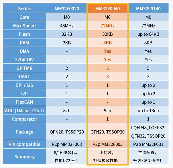 靈動(dòng)微電子MM32F0040與MM32F0020,MM32F0140的功能對(duì)比