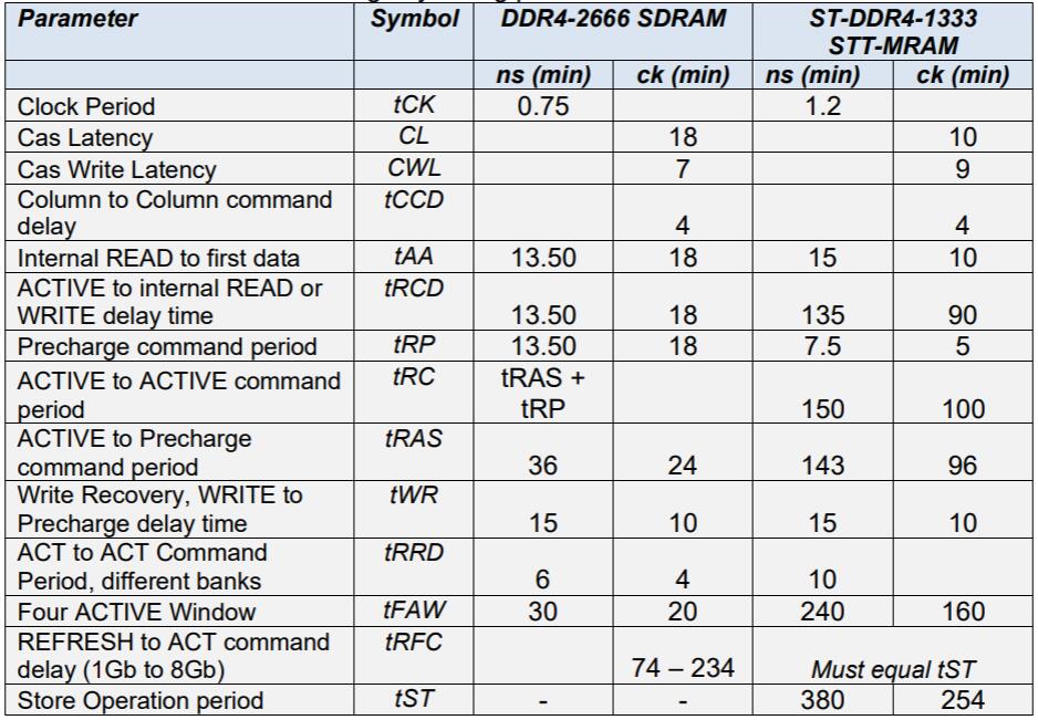 該表顯示了DDR4和ST-DDR4的關鍵時序參數