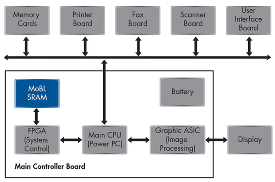 多功能打印機(MFP)是MoBL®SRAM器件的主要應(yīng)用領(lǐng)域。多種數(shù)據(jù)永久或臨時存儲在MFP內(nèi)存中。硬盤驅(qū)動器(HDD)或閃存驅(qū)動器存儲各種類型的用戶信息,而用戶工具設(shè)置,網(wǎng)絡(luò)設(shè)置和配置數(shù)據(jù)則存儲在專用的MoBL®SRAM中。SRAM還用于作業(yè)狀態(tài)和字體表。數(shù)據(jù)對于設(shè)備的運行至關(guān)重要,并通過電池的電源循環(huán)進(jìn)行保護(hù)。因此,MFP設(shè)計需要具有高可靠性和低錯誤率的