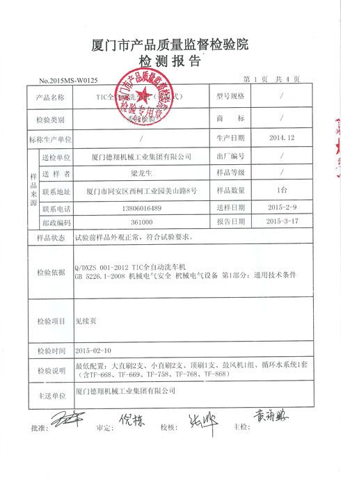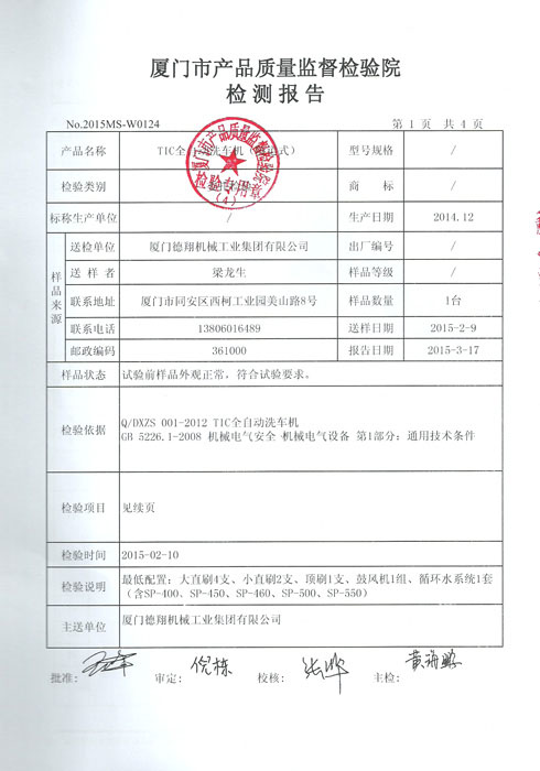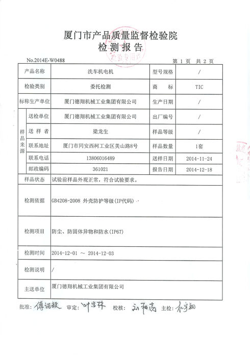 質量監督檢測報告-洗車機電機