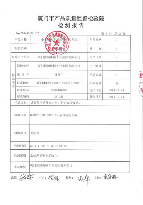 洗車機循環水系統檢測報告